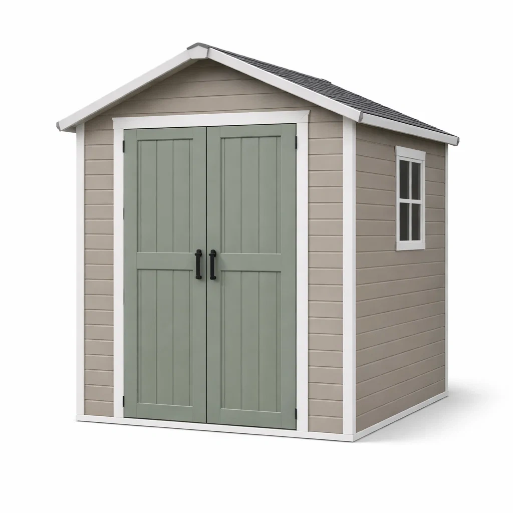 Schuppen kunststoff beige mit doppeltür und fenster