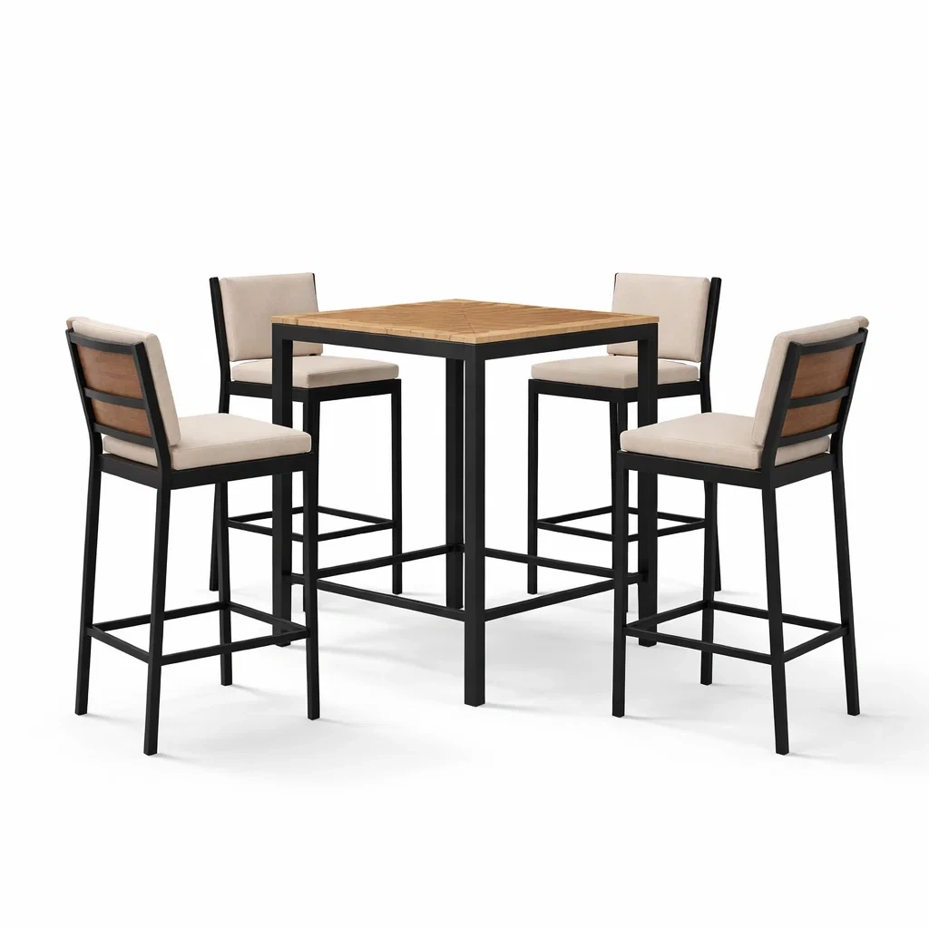 Bar set aus teakholz und stahl beige