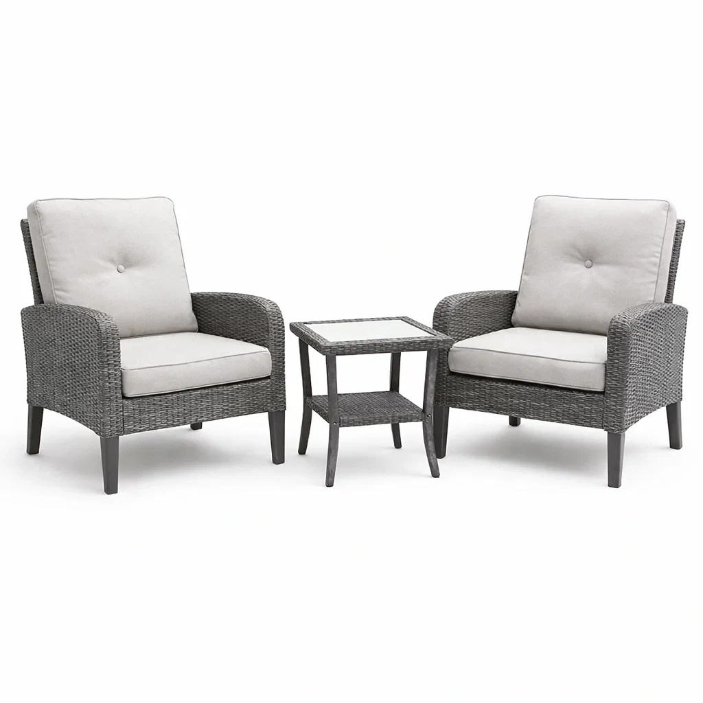 Loungemöbel-Set aus rattan mit glastischplatte sessel tisch dunkelgrau hellgrau